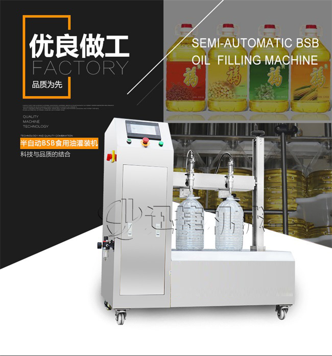 本機適用于花生油、大豆油、菜籽油、色拉油、芝麻油、石油化工潤滑油等各種油類和粘稠液體的定量要求。半自動雙頭電動BSB食用油灌裝機:采用的微電腦技術(shù),自備動力,管路無需加壓,節(jié)約運行成本;自動檢測油浙、自動修正溫度變化引起的密度變化,適合大溫差環(huán)境的油品灌裝工作,使用方便靈活;機電一體化設(shè)計,安裝方便,整機價格低廉。
