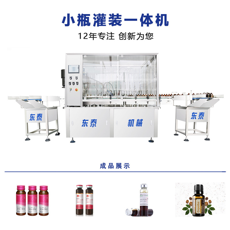 全自動旋轉(zhuǎn)式液體灌裝旋蓋一體機是我公司傳統(tǒng)系列灌裝封口設備,適用于各種圓形、異形瓶、西林瓶的灌裝旋(軋)蓋。